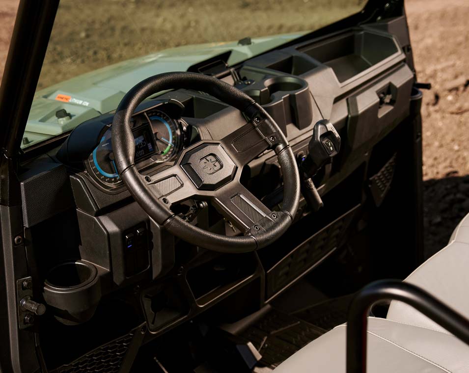 Horn, backup alarm, password protected, electronically adjustable speed limiting, Polaris Pulse Electrical System